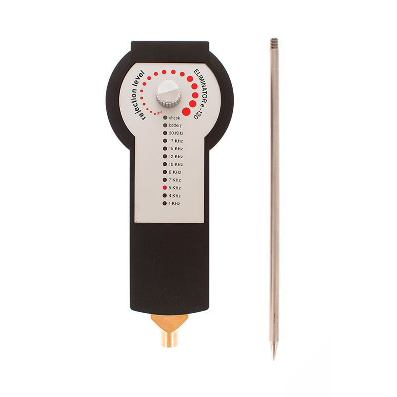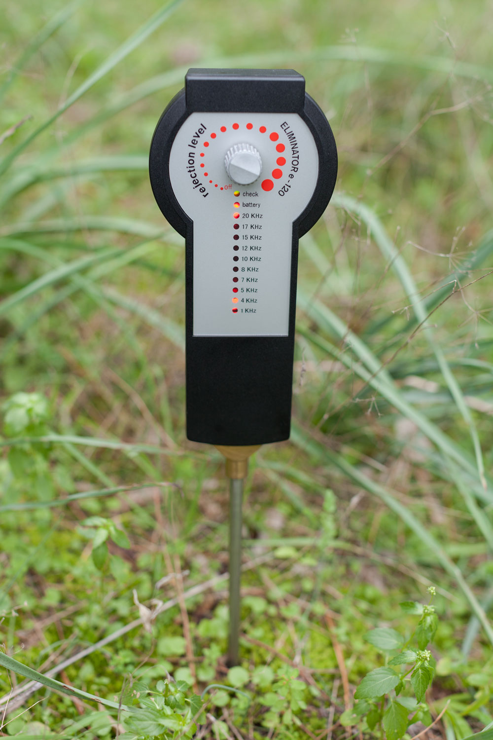 Οι «εξολοθρευτές πετρωμάτων» ELIMINATOR e 120 B, είναι ανιχνευτές χρυσού αποστάσεων οι οποίοι παρέχουν και επιπλέον λειτουργία φίλτρου για απόρριψη μεταλλευμάτων. Συνδέστε το ELIMINATOR e 120 B στη γείωση εδάφους και ενεργοποιήστε το. Επιλέξτε την συχνότητα του μετάλλου που επιθυμείτε να ανιχνεύσετε. Η συχνότητα εκπέμπεται στο έδαφος περιμετρικά και ενισχύει ηλεκτρονικά τη φυσική ακτινοβολία του συγκεκριμένου μετάλλου της επιλογής μας, ώστε να υπάρχει αξιόπιστος διαχωρισμός μετάλλων. Για τον εντοπισμό χρειάζεται το σετ βέργες ραβδοσκοπίας Γ με τον ενισχυτή σήματος. Οι βέργες ραβδοσκοπίας μας δίνουν τη κατεύθυνση του στόχου, καθώς έλκονται προς το δυνατότερο σήμα μέσα στην εμβέλεια τους, το οποίο πλέον δεν θα είναι τα μεταλλεύματα του εδάφους, αλλά αυτό που έχει δημιουργήσει ίδη το Eliminator e 120 B.