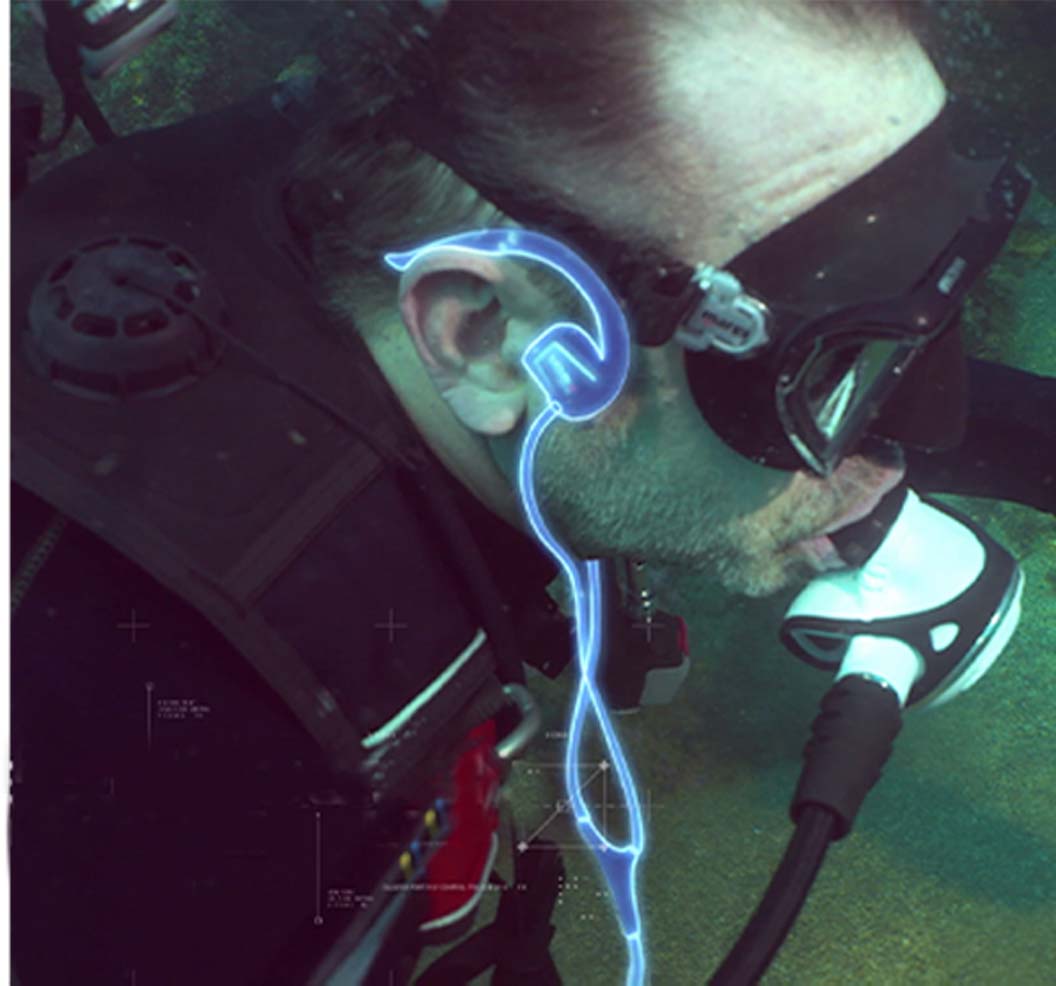 Χρησιμοποιώντας συνηθισμένα αδιάβροχα ακουστικά κάτω από το νερό, το αυτί γεμίζει με νερό και η ακοή συχνά μειώνεται. Το BH-01 κάθεται μπροστά από τα αυτιά στο ζυγωματικό και μεταδίδει τον ήχο στο εσωτερικό αυτί απευθείας μέσω δονήσεων που εφαρμόζονται στα οστά, χωρίς να καταπονεί τα τύμπανα.