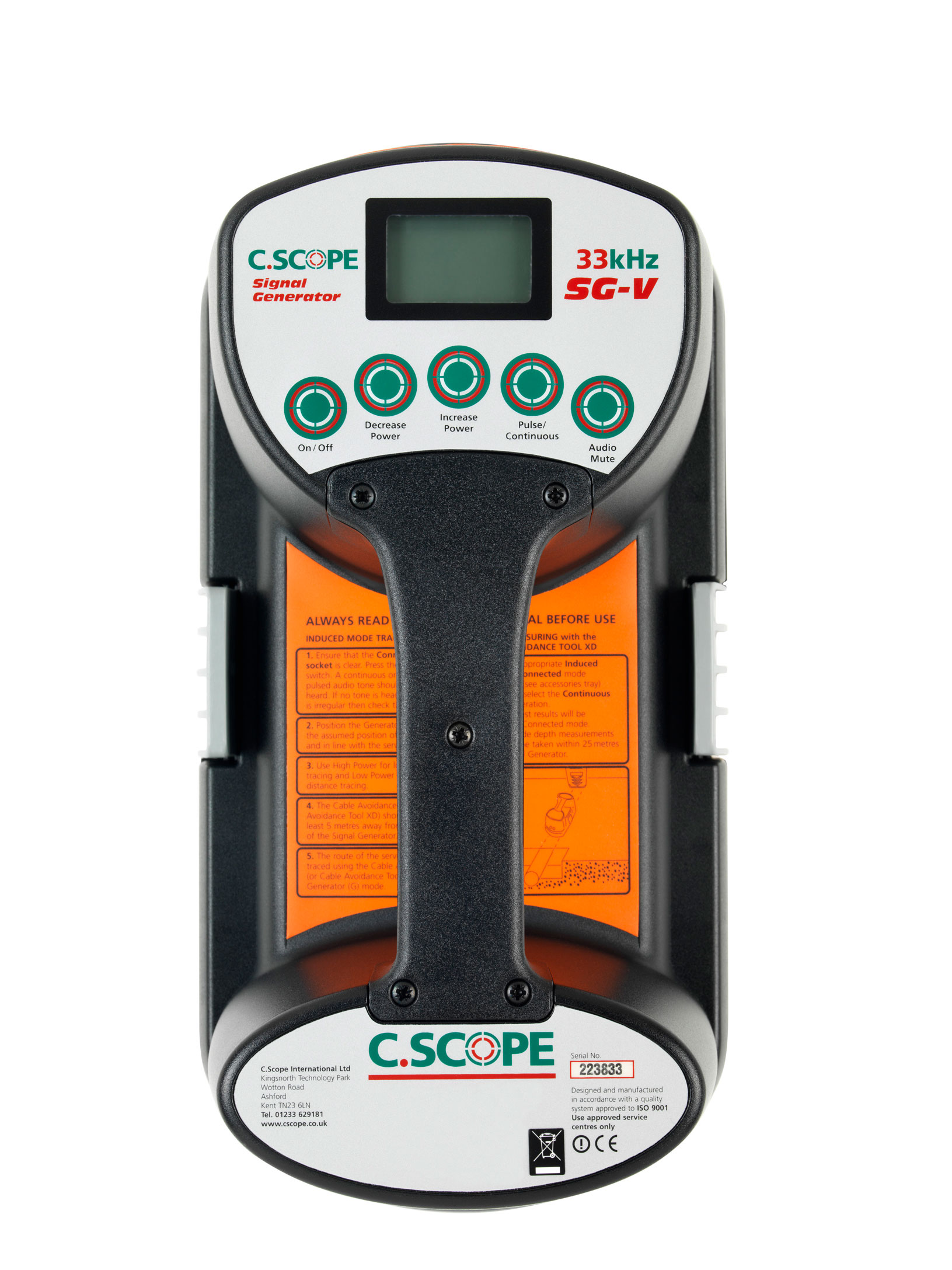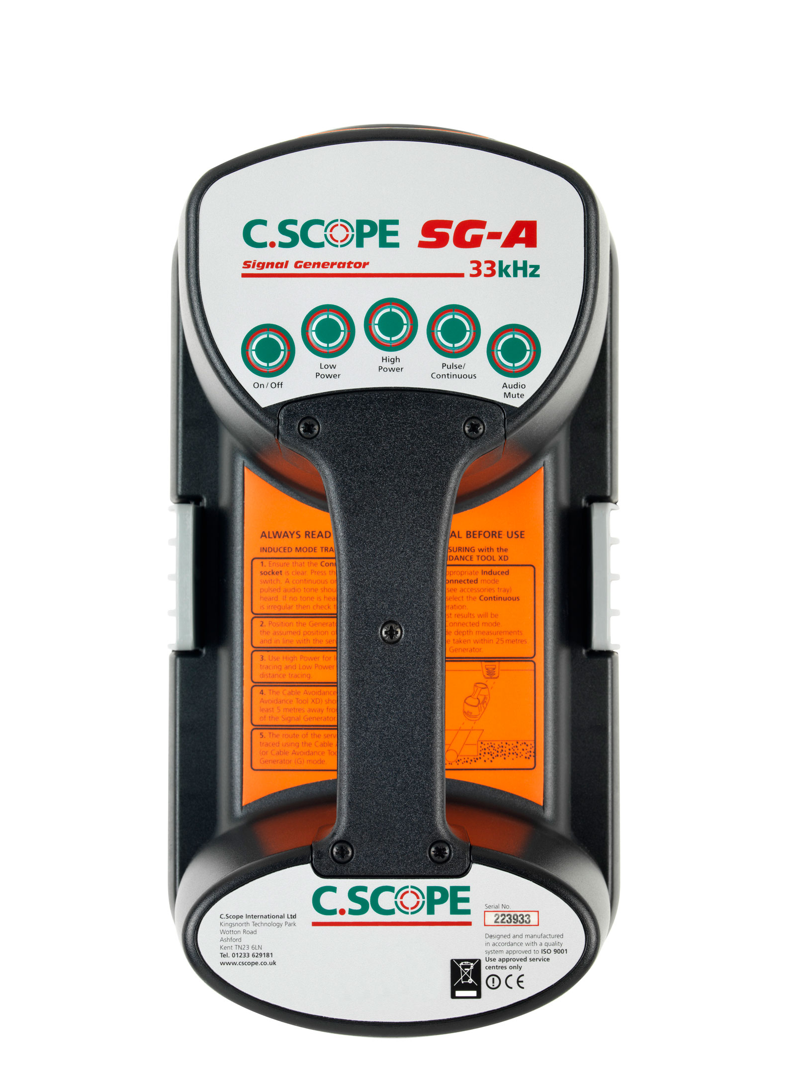 – Η C.Scope γεννήτρια σήματος εκπέμπει σήμα 33KHz το οποίο μπορεί να διοχετευθεί σε έναν μεταλλικό αγωγό είτε με άμεση επαφή, ή επαγωγή, τοποθετώντας την γεννήτρια κοντά στο σημείο όπου πιθανώς ευρίσκεται ο αγωγός.