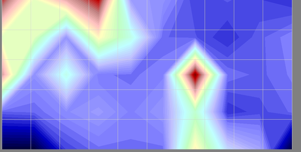 Πλέγμα: Είναι οδηγός για το σωστό βηματισμό. Η κάθε κυψέλη έχει απόχρωση ανάλογα τα δεδομένα που λαμβάνει, μέτρηση βάθους στόχου και πληροφορία συνταγμένων βήματος / γραμμής σάρωσης, για να επικεντρώνεται το σημείο του στόχου και στην επόμενη επίσκεψη σας.