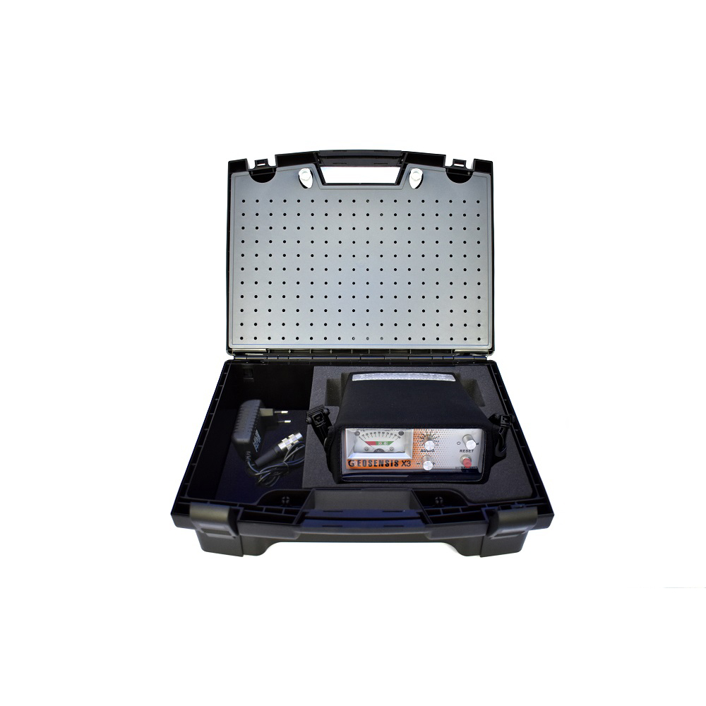 Η έκδοση εξοπλισμού «GEOSENSIS X3 βασικό» περιλαμβάνει μονάδα ηλεκτρονικών σε φορητή θήκη με φορτιστή (100 έως 240 v), οδηγίες χειρισμού Ελληνικά, ακουστικό, μέσα σε ανθεκτική πλαστική βαλίτσα με αφρώδες υλικό, διαμερίσματα για αξεσουάρ και χώρισμα στο καπάκι για πηνίο καλωδίου.