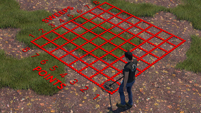 Ανάλογα το μήκος βηματισμού, απόσταση μεταξύ σαρώσεων έρευνας και μέγεθος πηνίου ανιχνευτή - Ανάλυση: