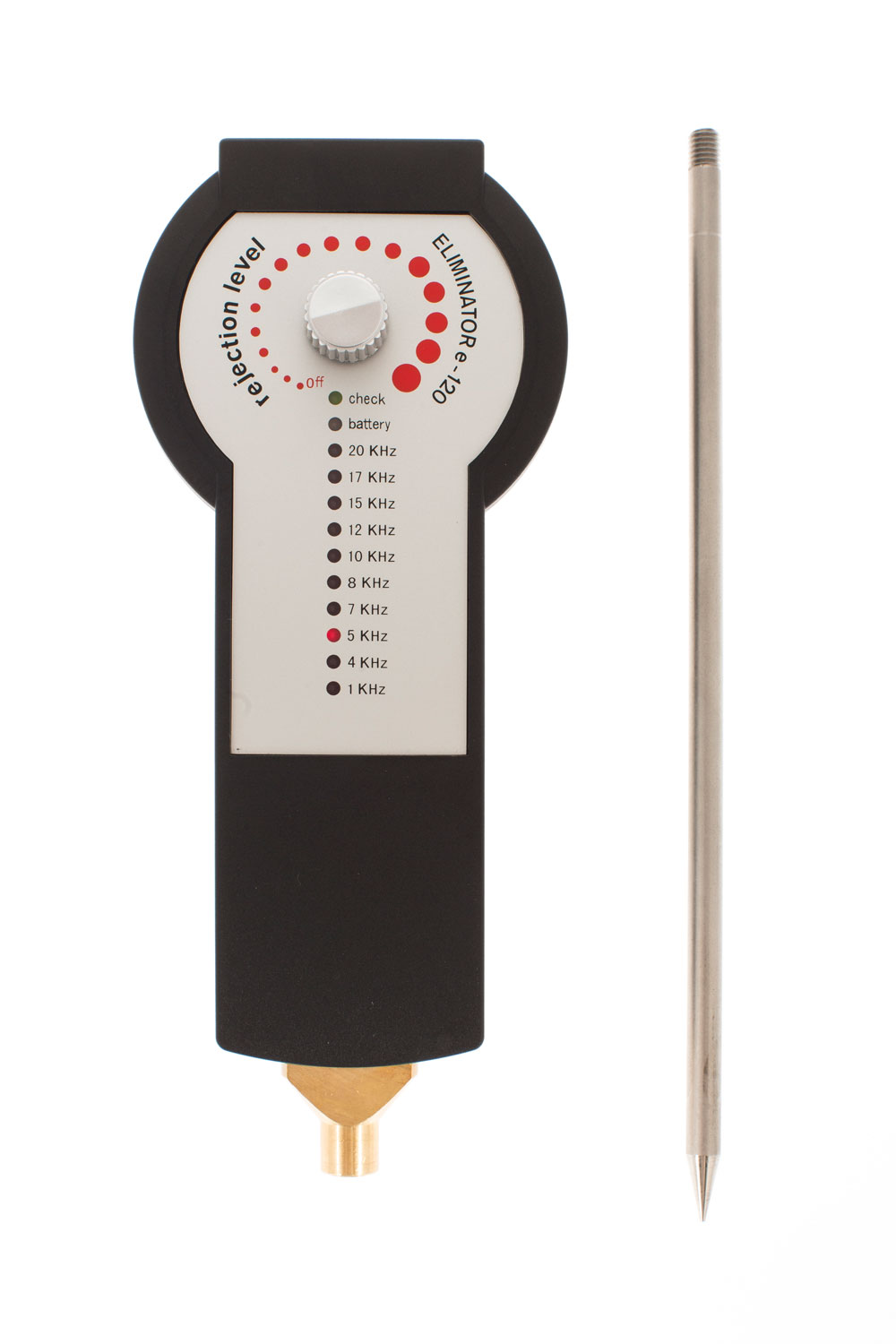1. «Εξολοθρευτής» Eliminator e 120 B για εκπομπή σήματος, που λειτουργεί σαν αποστατικός ανιχνευτής χρυσού και μετάλλων μοριακών συχνοτήτων αλλά και σαν φίλτρο απορρίψεων μεταλλευμάτων – μικρών στόχων.
