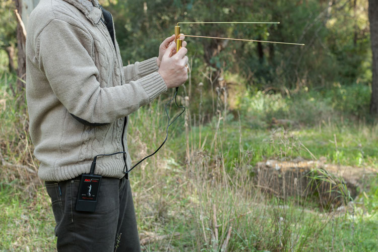 Ο ενισχυτής τοποθετείται στη ζώνη του χειριστή και συνδέεται με τις κεραίες με το εικονιζόμενο καλώδιο. Tροφοδοτείται με μπαταρία 9v. Με τον ενισχυτή δημιουργείται πλέον ένας ηλεκτρομαγνητικός δέκτης, έτσι όλοι οι χειριστές (και όχι μόνον όσοι έχουν έμφυτη ικανότητα στη ραβδοσκοπία) μπορούν να ανιχνεύουν με επιτυχία.