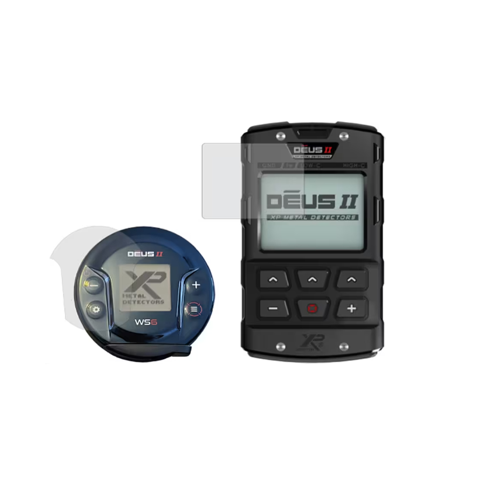 Τα εικονιζόμενα τζάμια προστασίας είναι τα αυθεντικά που παρέχονται από την XP. Παρέχονται με το κιτ καθαρισμού. Μπορούν να αγοραστούν μεμονωμένα για την οθόνη του XP DEUS II, την οθόνη ακουστικών WS6 ή σαν σετ με κλικ στο «Κάντε μια Επιλογή».